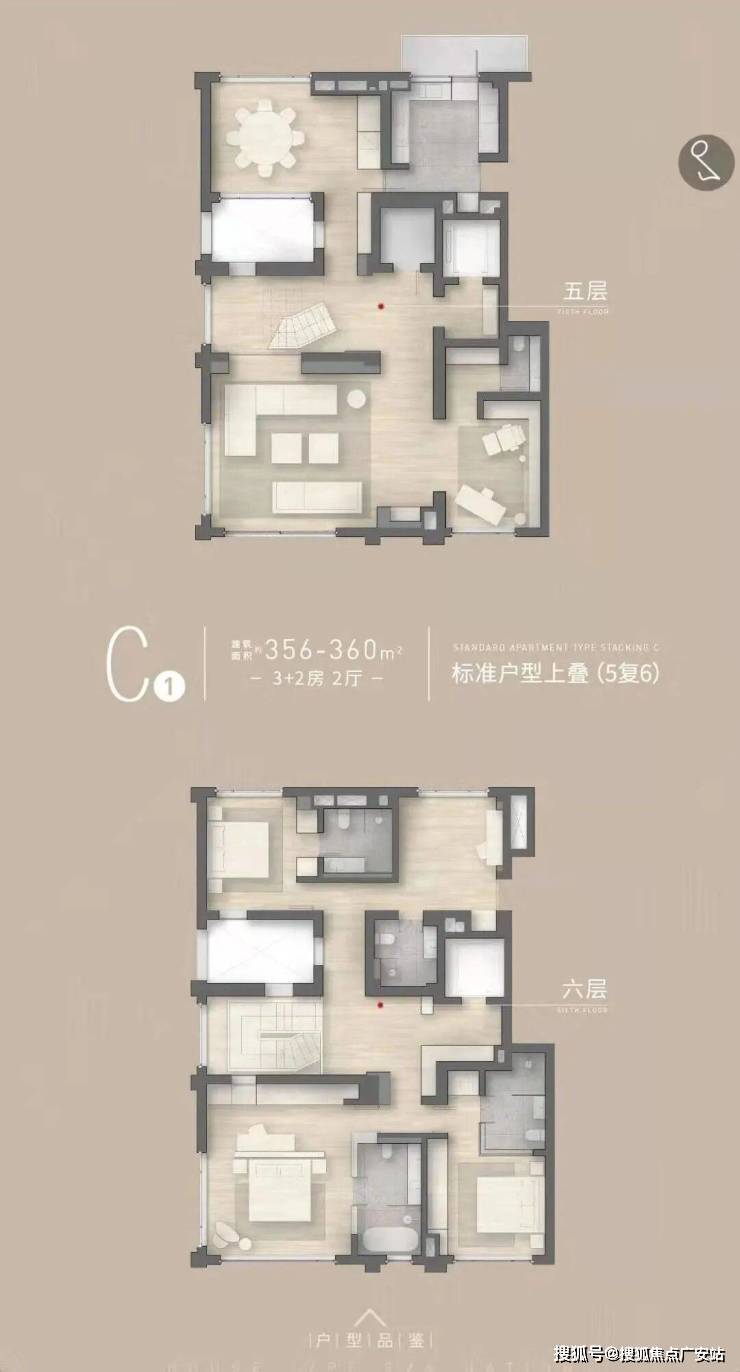 上叠(310-350㎡):赠 60㎡露台,总价4000-4800 万