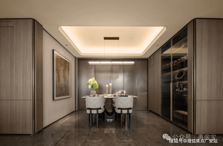 你仔细观察便能发现,墙面木饰面上下纹理不同,镶嵌金属线条,在视觉碰撞中营造立体层次,复杂工艺的背后,是为了呈现更出众的视觉效果。