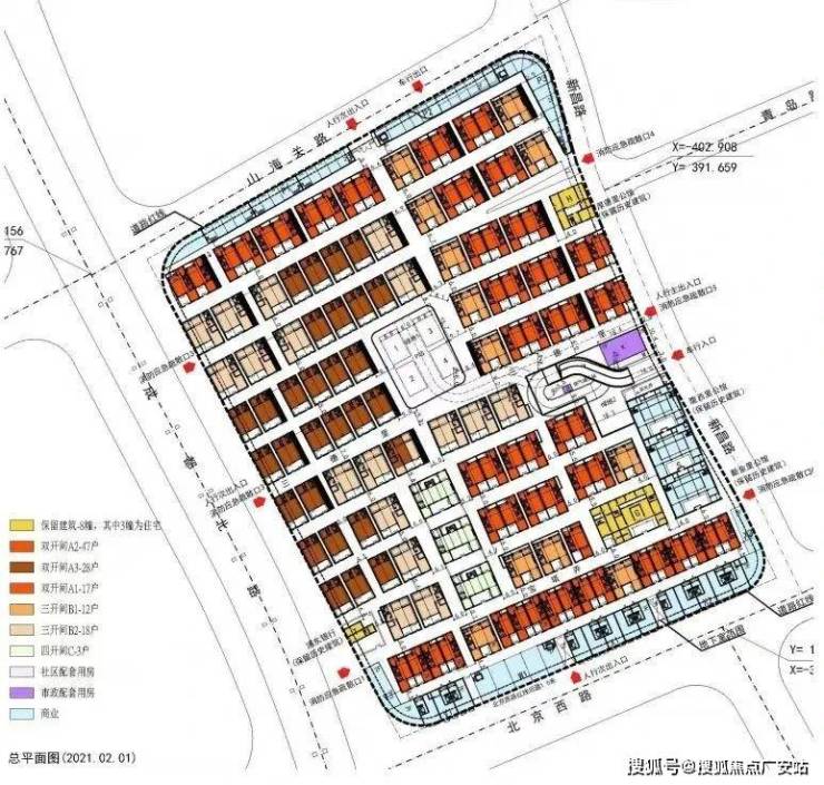 项目由南北两幅地块组成:就是上述的001、007街坊,即称1#地块和7#地块,其中,