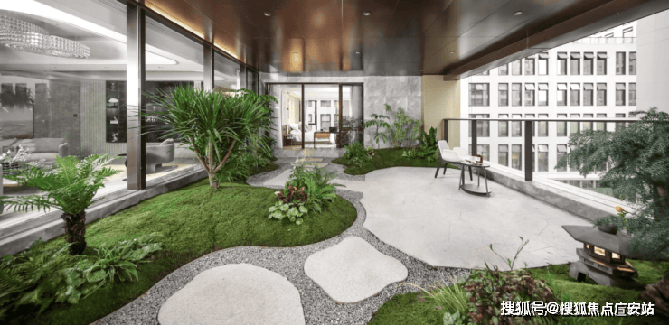 滨悦城户户都有约40㎡的深U形空中花园。除了室外的景观,滨悦城还在每层都设计了花园露台,约480㎡的户型更是做到了每户配置宽约5.3米,深约8.1米的空间私家花园。
