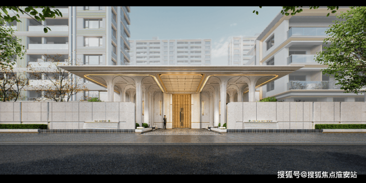 约24米宽的“疏影鎏光”主入口,与疏影路成排香樟共同构成社区门庭封面。