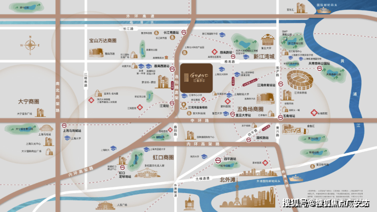 江湾鸿玺售楼处地址位置:上海市宝山逸仙路殷高西路交叉口(现场销售接待)