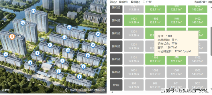 而高层性价比也是非常高的,目前已经开盘是8#楼,128㎡,和143㎡的改善型户型。