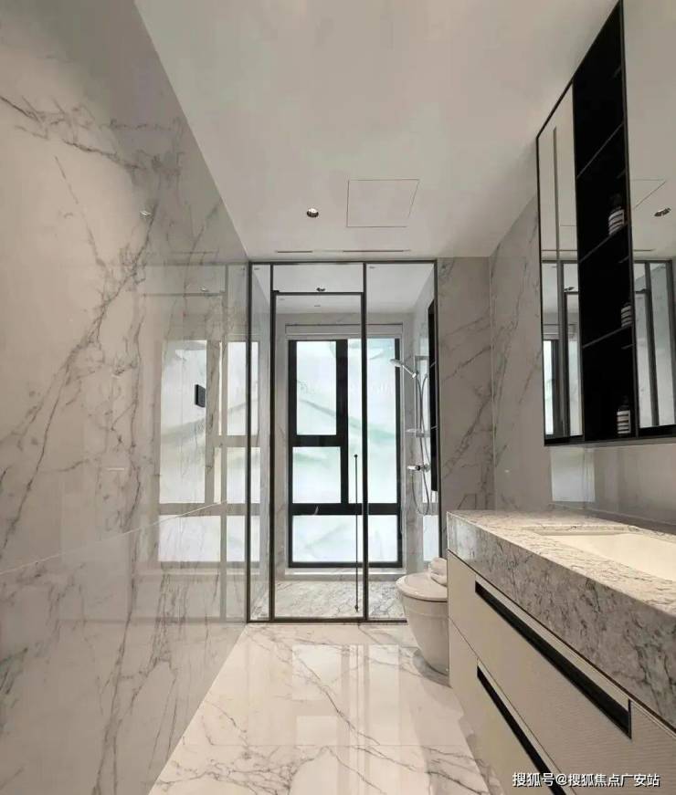 八种不同材质的奢石运用,卫生间地面全铺石材