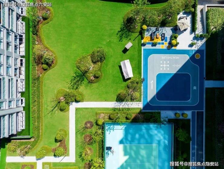 社区内规划网球场、篮球场、羽毛球场、综合运动场及儿童游乐区等7大主题场地,全部实景落成。其中6米挑高观景平台与健康跑道串联,形成“运动+观景”复合场景。羽毛球场采用专业级塑胶地面,篮球场配备夜间照明系统,满足全时段使用需求。