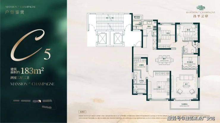 建面约183㎡4房2厅2卫户型▼