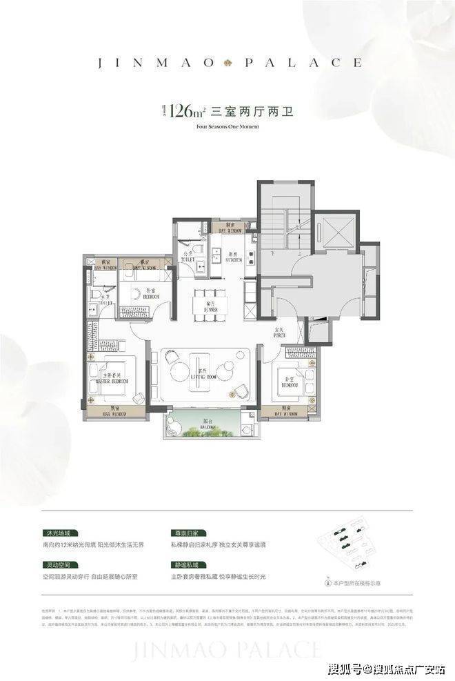 本次加推的114㎡三房两卫,南向双阳台,飞机户型南北通透;126㎡三房两卫,近6米宽厅,尺度感与场域感兼具。两个户型均为项目主力产品,此次加推后,剩余房源已不多。