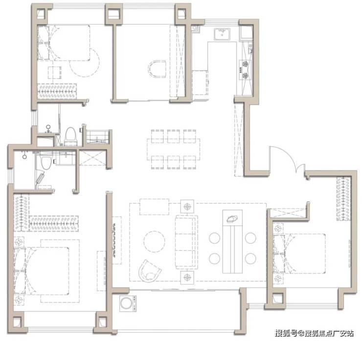 大横厅的设计,让这个户型拥有堪比别墅的南向采光面,这个尺度感以及采光通透度非常出众。