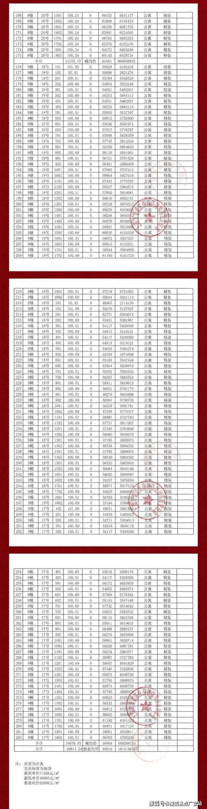 最新一房一价表: