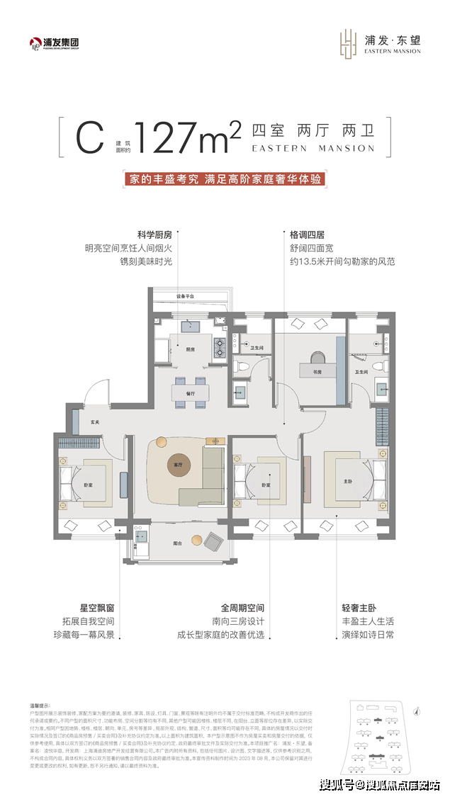 南向四开间,约13.5m奢适面宽,全飘窗设置,使得改善的面积段,竟拥有媲美大平层的舒适度