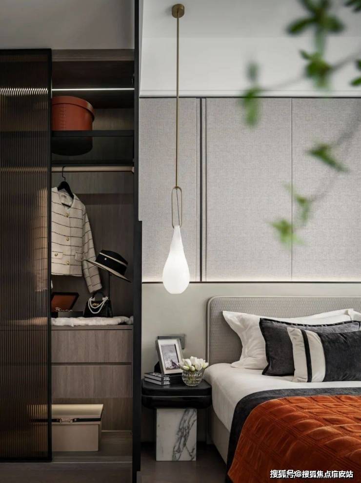 主卧床背景墙 进行了软包处理,省去了业主未来二次装修的时间、精力跟成本,更好的给业主一个舒适且高颜值的家。