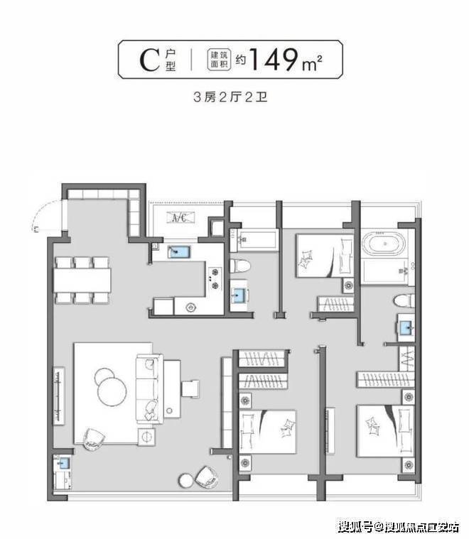 主力户型:建面约105㎡、138㎡、149㎡、151㎡的三至四房。
