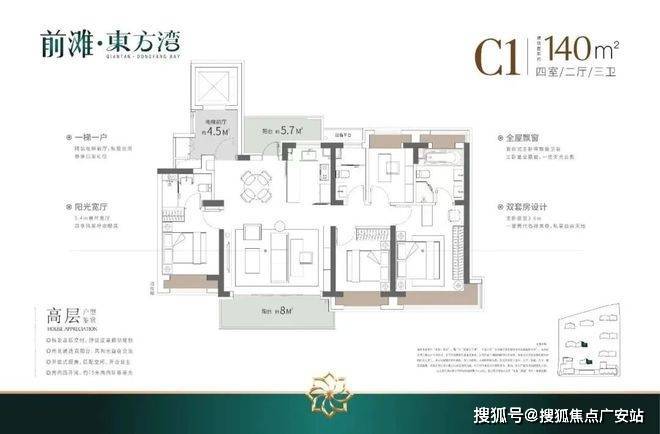 如果有进阶改善置业需求的客户,可以选择建面约140/175㎡4房2厅3卫!