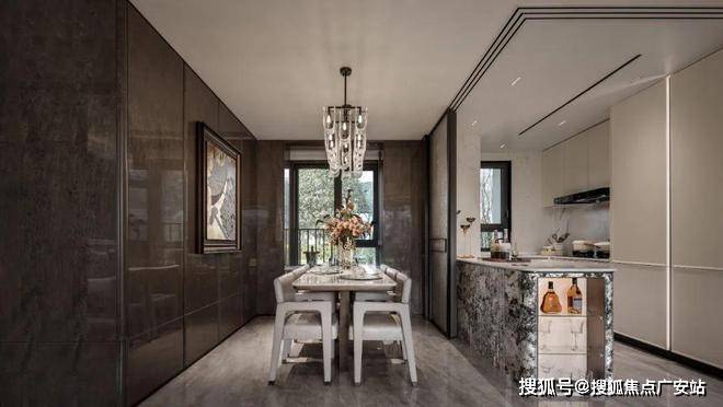 项目采用鎏金塔冠造型,灵感来源于国际邮轮港的曲线,流光美学的外立面,既有辨识度又有质感,是未来业主身份的象征。阳光倾泻而下,在不同光影与环境下,让家成为一件艺术品。