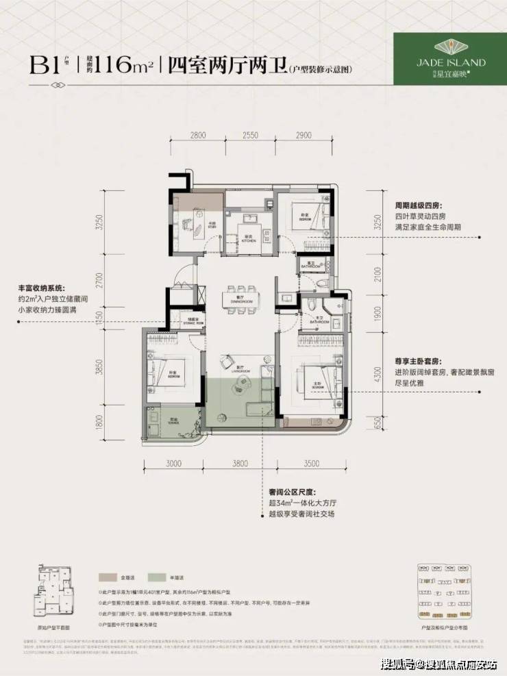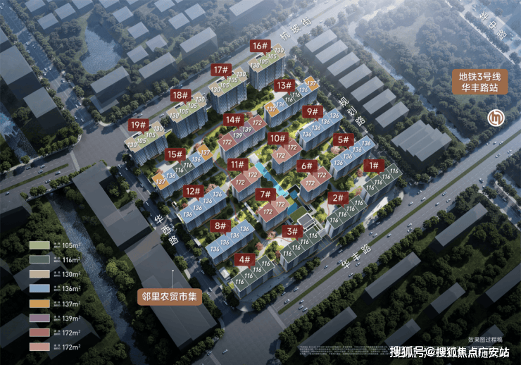 由于项目为新规后产品,户型得房率提升明显,改造后使用率高达93%以上,多数为改善大四房户型。项目预计首开推出116㎡与172㎡两个户型。