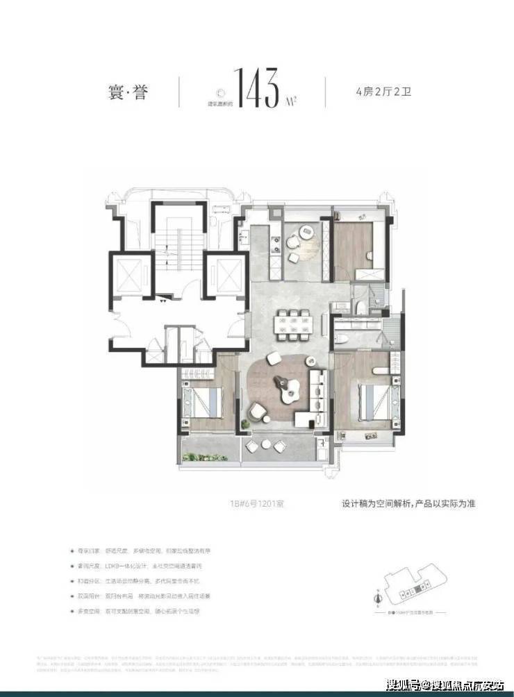 户型多样:主力户型为建面约112㎡、119㎡三房,以及143㎡四房,另有245–289㎡联排别墅在售。其中143㎡户型为准一梯一户设计,享独立电梯厅,南向面宽达12米,空间尺度优越。