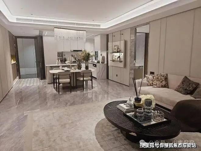 电视背景墙采用卡慕白的石材+皮革造型,弧形吊顶,相当讲究,连空调出风口的形状都打造为海上·清和玺logo山茶花的形状~~三大件为大金(或同等档次)中央空调和地暖,新风系统为百朗(或同等档次),南向阔景阳台,采光视野一级棒!