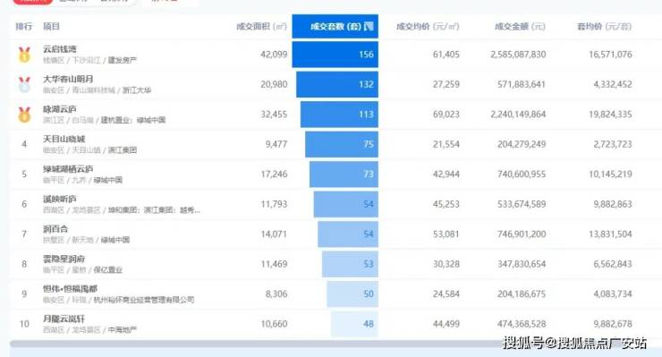 据杭州克而瑞数据显示,2025年1月1日至今,大华春山明月以132套网签量,位居成交套数榜第二位,仅次于云启钱湾的排屋(156套)。