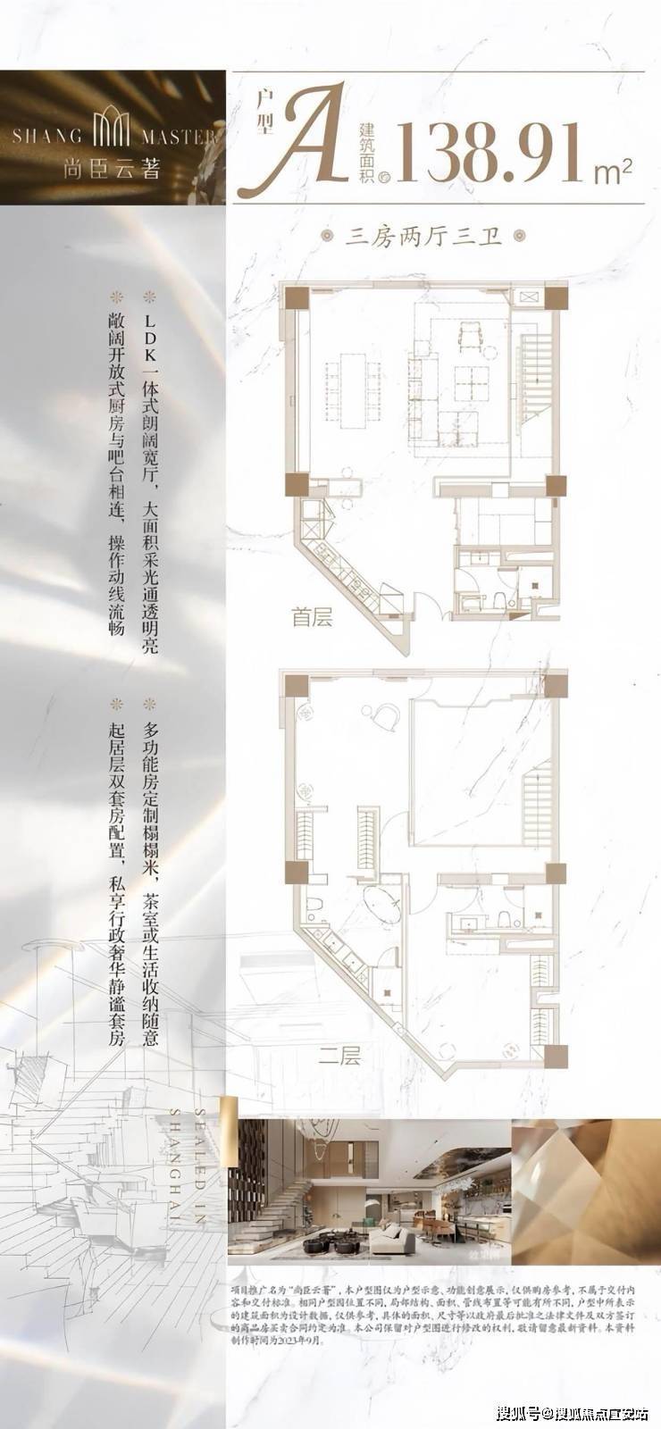 价格:销售均价约 9.58 万 / 平,总价 1380 万起,因挑高 5.8 米,买一层送一层。
