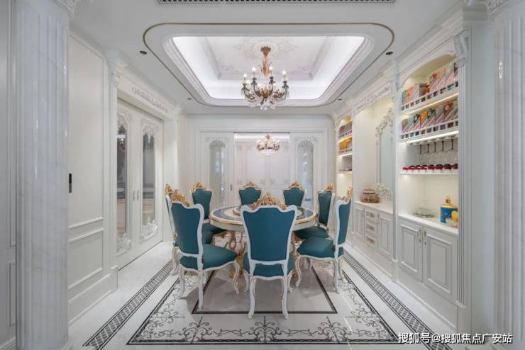 法式风格非常注重对称性,通常以一个视觉中心点,如壁炉展开布置,围绕这个中心点进行对称布局,营造出恢宏的气势和奢华的居住空间。