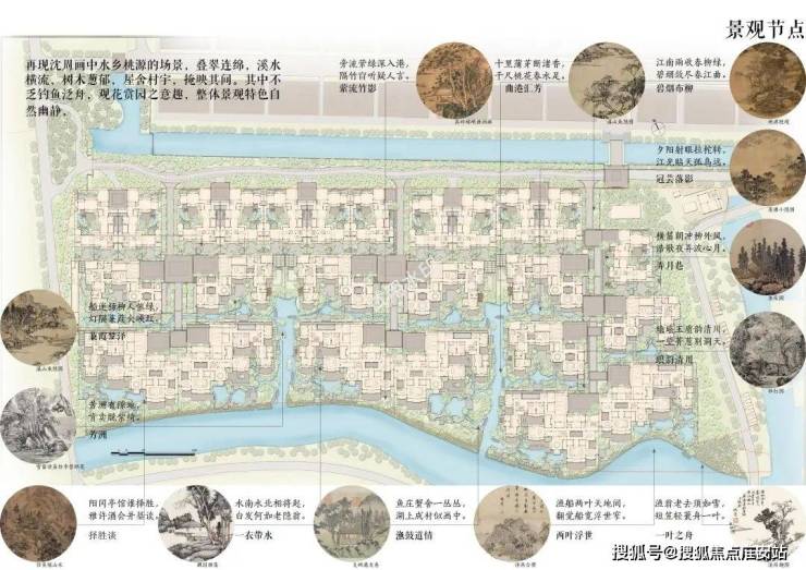 以明代画家沈周《水村渔乐之桃花源》为灵感,匠造不拘园、渔隐园、绿琼洲三大主题景观,融合萦流竹影、港汇芳、碧烟布柳等十三大景观节点,擘绘一座私藏版江南名园。在这里,处都是风景,每一刻都是诗意。
