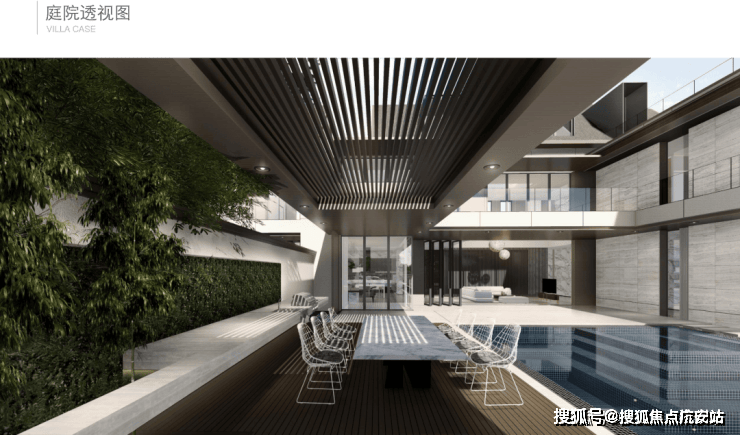 泳池里两旁的庭院,可以与亲朋好友相聚。