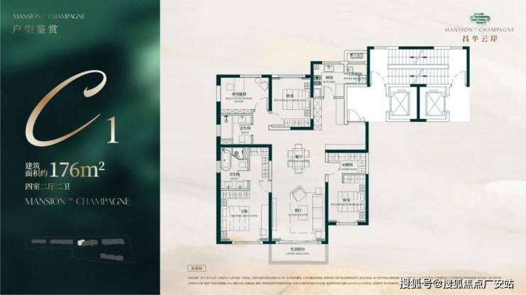 建面约176㎡4房2厅2卫户型▼