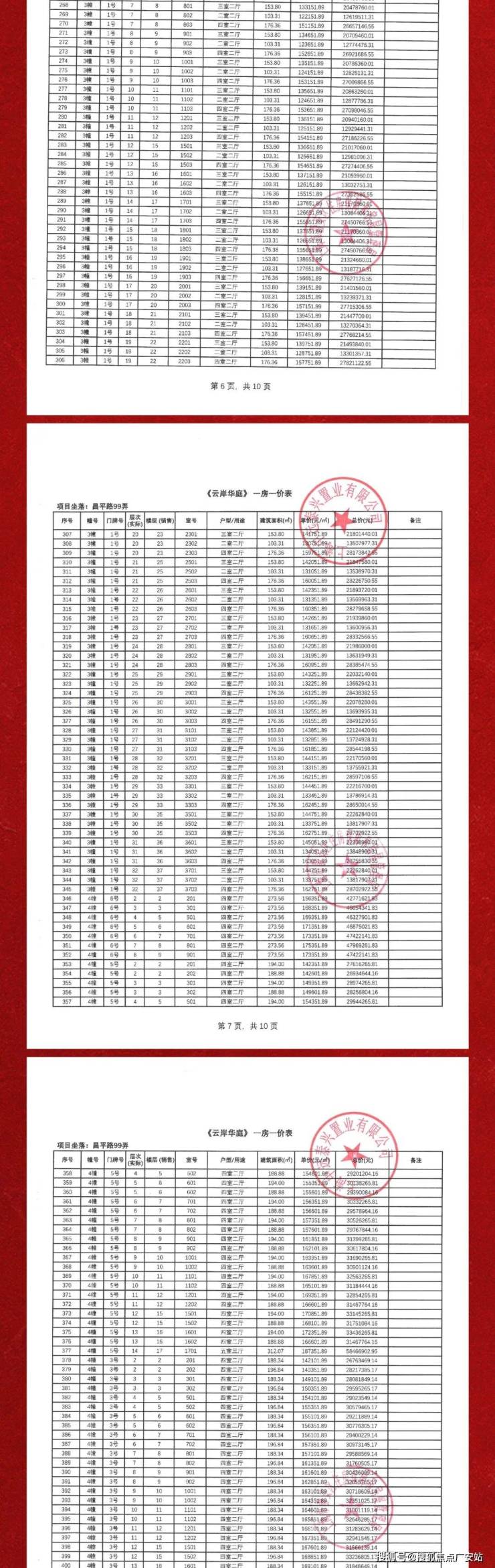 项目一房一价表▼