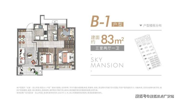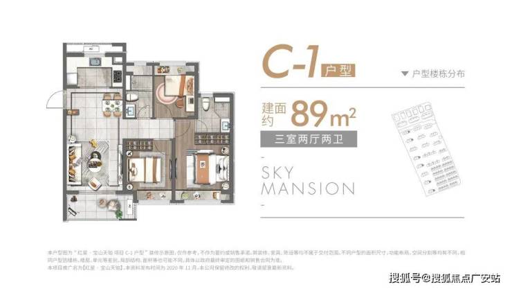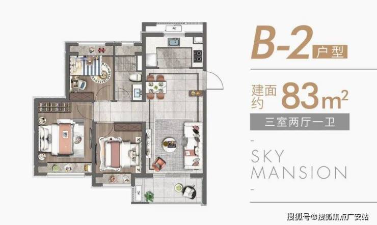 除了建面约89㎡的洋房,建面约83~89㎡高层户型也各有所长,均是三房设计,无论是从结构布局,还是空间利用皆相得益彰,承载一家人的美好生活。高层户型如下: