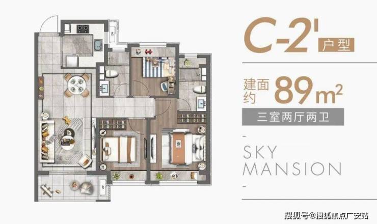 89-square-meter high-rise with 3 bedrooms, 2 living rooms and 2 bathrooms: Total price: 3.3-3.7 million yuan