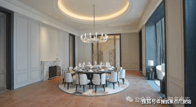 同时精奢细节嵌入,不仅室内高颜值,更保障了业主后期绝佳使用体验!管中窥豹:比如,定制铸铝门、专属奢石把手,进门后玄关地面设计了专属石材拼花,并定制通体玄关柜!