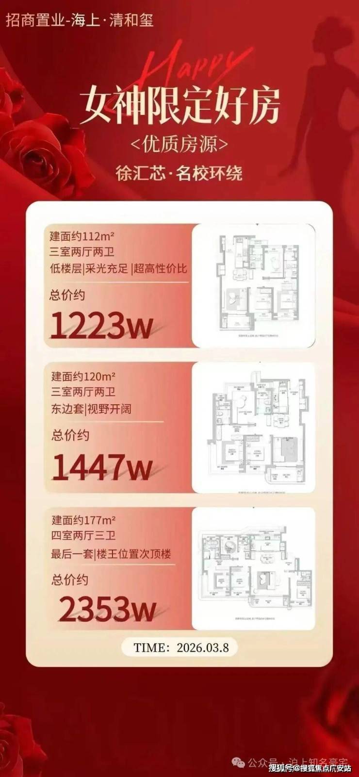 价格:备案均价约10.5 万 /㎡,总价1180 万起,招商积余物业
