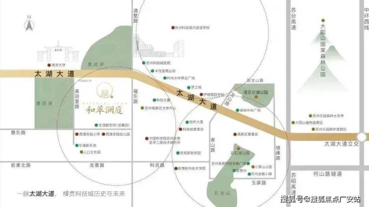 和萃澜庭位于苏州高新区科技城核心位置,向东1km为科技城文体中心、2km为科技城核心区TOD项目,向西1.5km为南大苏州校区