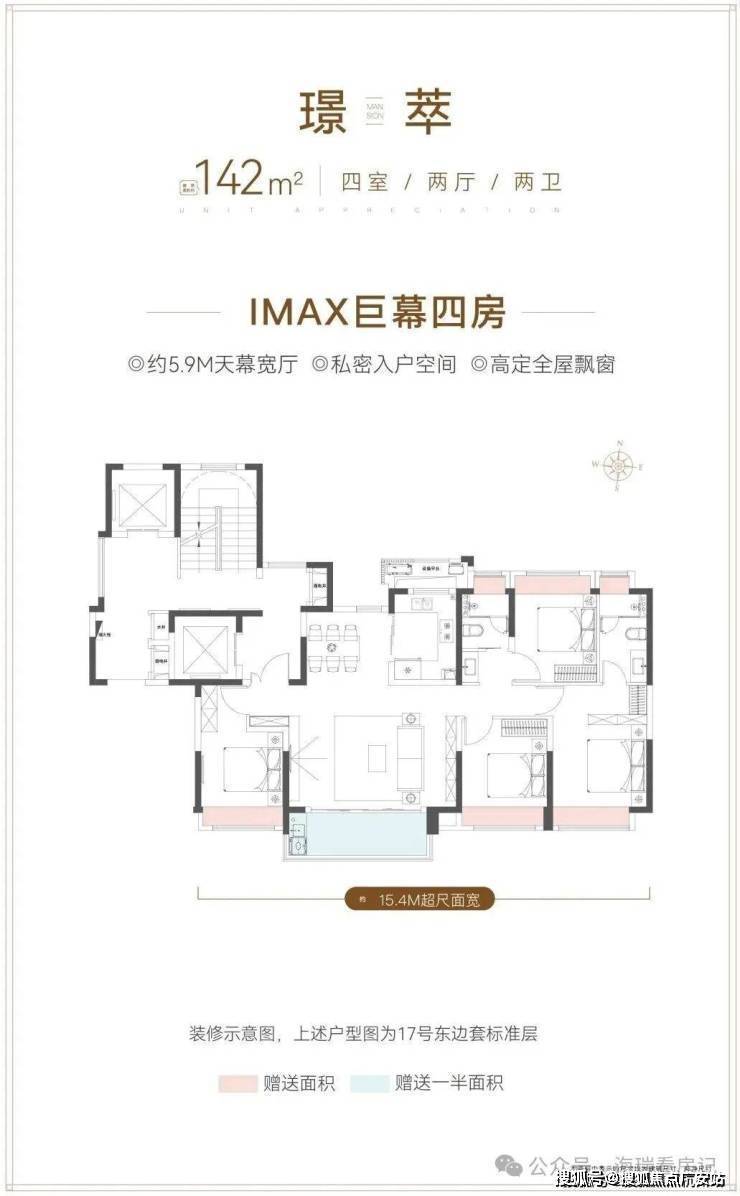 142㎡ 四房两厅两卫:845–1088 万,5.9 米大横厅、15.4 米南向面宽、IMAX 观景格局