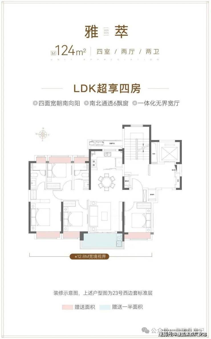 124㎡ 四房两厅两卫:754 万起,四开间朝南、LDKB 一体化、主卧套房