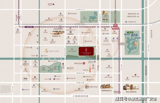 该地块位于南桥核心地段,南侧紧邻浦南运河休闲步道,北侧有S4高速出入口,紧邻地铁5号线环城东路站,1站至望园路站还可换乘15号线(南延伸段在建),进站直达紫竹高新园区和莘庄城市副中心,北侧还有市域南枫线(在建)环城西路站,周边三轨交环绕。