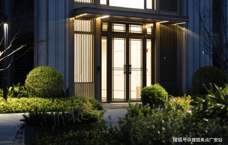 入口中轴对称式的前厅水景,两侧阵列由榉树围合组成,不仅拥有“门前中举”的美好寓意,也让入口的仪式感拉满,与灵动的喷泉水景交相辉映,形成具有东方礼序的归家体验。