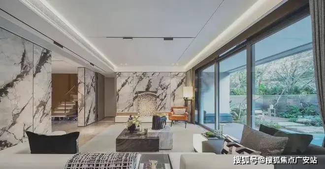 约628㎡的无界会所,作为溪前雅居的关键归家场景之一,更是壕出天际。如镜面的池底铺满了Prada绿奢石,光与影的跃动下更显高级。