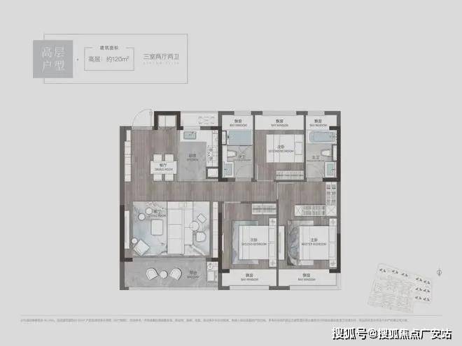 4开间朝南:南向3间卧室+大横厅实现4开间朝南,有更多的空间和采光条件为多个场景的生活确定条件。