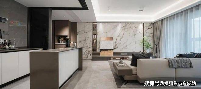 LDKG一体化,O形洄游式方正社交空间,L形滑轨式半开放厨房设计