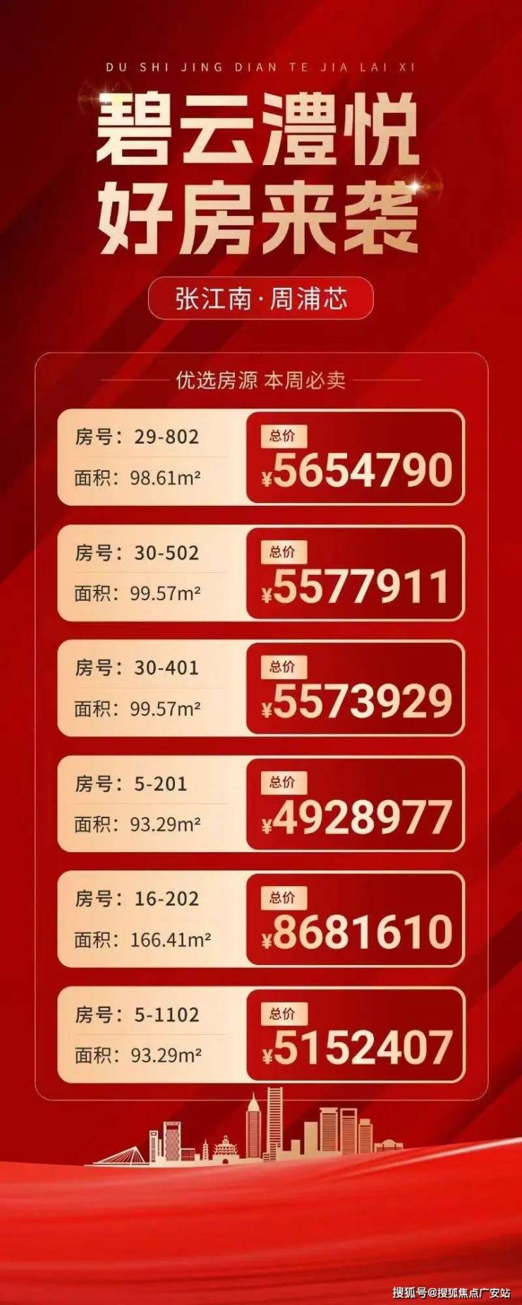 金桥碧云澧悦,张江后花园!一期少量房源售完!二期直接认购!建面约93-165㎡3-4房,过会均价约5.6万/㎡!最新一房一价表!