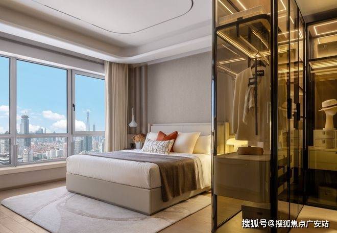 超约70㎡的南向主卧套房,是对品质生活的深层解读。将景观视野最大化地引入室内,并集成了功能完备的豪华卫浴与储物系统,主卧连通蝶形的阳台设计,实现了“套房即小家”的便利与尊享。