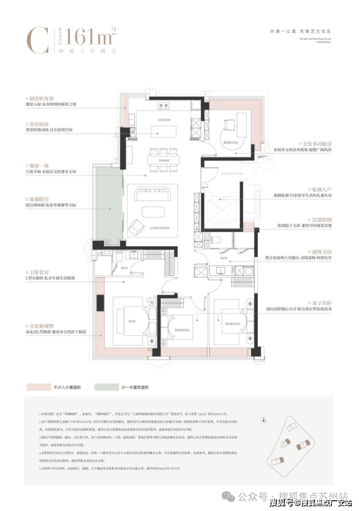 而建面约161㎡的奢享四房,则是对改善需求的深刻洞察。其设计更是颠覆性的:全屋四个转角窗构建外滩天际环幕视野,三卧朝南且近乎等面宽的“真四房”设计,实现了家庭成员间的景观平权与舒适平权。酒店式四分离次卫与独立家政空间的设计,更是对生活细节的极致考量。