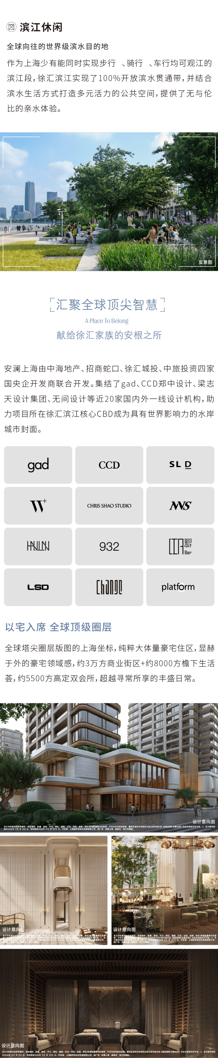 区位地址:徐汇区东安路500弄,内环内徐汇滨江核心,西岸金融城规划腹地,直面1.4公里黄金S湾江岸