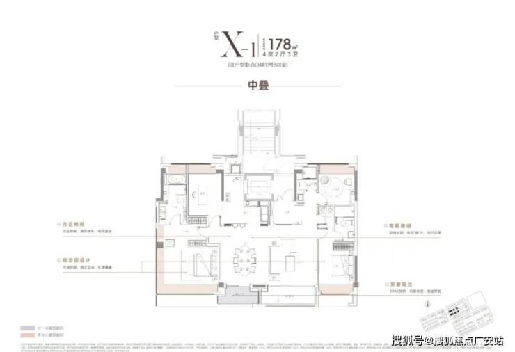 中平户型以四开间朝南的IMAX级采光面,打造出堪比市区豪宅的尺度感。4房4飘窗2阳台的设计,配合双套房布局,一共有三个套房,让每个家庭成员都享有独立私密空间。