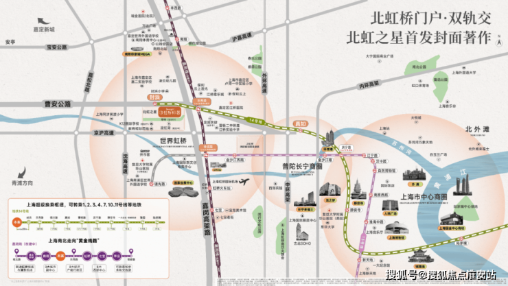 近地铁13号线金运路站:纵横普陀区、静安区、黄浦区、通达南京西路、淮海中路、新天地等地。南北动脉-嘉闵高架:上海“三横三纵”重要南北动脉,接轨虹桥商务区,高效连接上海各区。