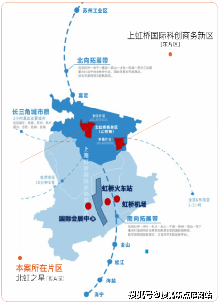 北虹桥作为虹桥国际开放枢纽的创新承载区,兼具“长三角、大虹桥”的双重区位优势,将承载虹桥国际中央商务区主导功能,成为链接辐射长三角的创新经济集聚区、中央商务配套区和高品质国际化社区。