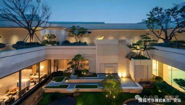 滨江松川境:划定奥体新豪宅4大标准|「超级单品」静奢美学安放在奥体|169-199㎡“低密+顶序”纵揽奥体顶豪!门头气势恢宏。做了约80米宽,6.5米高。大门材质用的是熔铜,入口处还设置25米长叠级水景承托整个入口,沉香米黄、蓝翡翠潘多拉等多种名贵石材搭配,每平米光石材成本就是近万元。▲下沉式庭院会所实景图