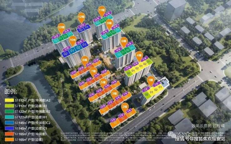 社区内5/8高层楼栋均有架空空间覆盖,共计约1700㎡,最高建筑层高约7.2米的架空空间以休闲下沉卡座、水吧台、休闲会客区打造,联动室外水池营造出酒店式度假空间,实现建筑与自然的无界融合。项目将推出建面约112㎡、122㎡、145㎡高层3-4房以及建面约160-165㎡叠墅,共计624套,其中112户型为一梯两户,122户型两梯两户。建面约112㎡3房2厅2卫,约166套,