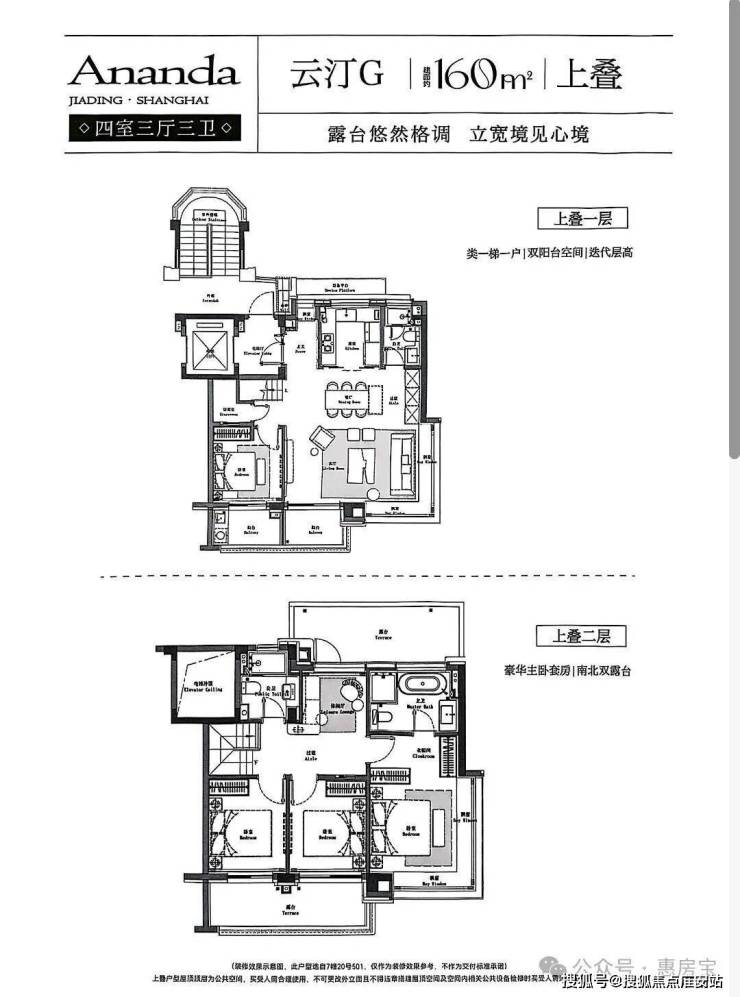 建面约160㎡上叠预计使用率最高约145%、约8.5m横厅双阳台、南北通透主卧套房。